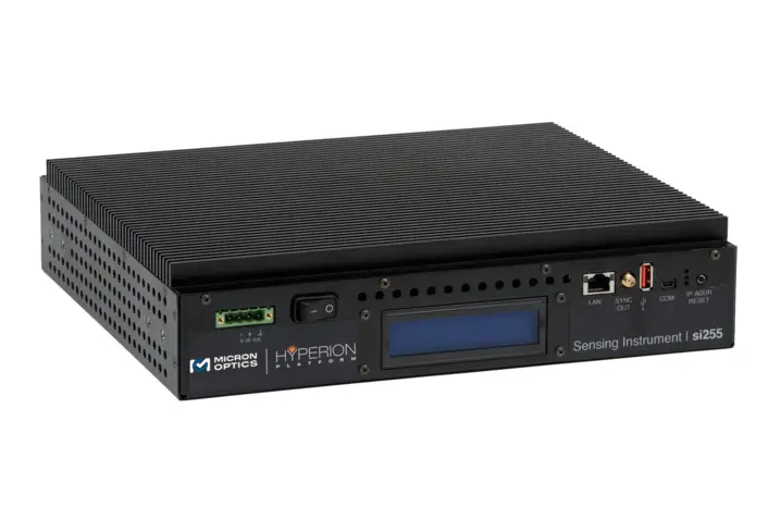 Der Interrogator leitet sich von der HYPERION si155-Plattform ab und nutzt die Vorteile, des patentierten Fabry-Perot-Filter von Micron Optics und der Wellenlängenreferenztechnologie.
