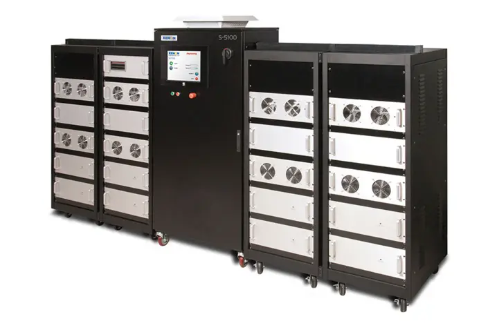 Das Sinteron S-2100 ist ein System zum Sintern von Silber-, Kupfer- und anderen Tinten, zum Aushärten von Dünnschichtsubstraten und zur Oberflächenbehandlung in Halbleiter- und Photovoltaikanwendungen. Die Stromversorgungseinheiten sind in einem 19-Zoll-Rack untergebracht. Stromversorgung und Kühlung sind Teil des Systems.