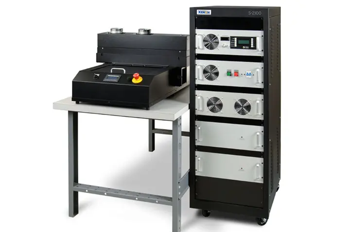 Das S-2210 von XENON ist ein hochmodernes Blitzlampen-System für Forscher und Entwickler. Anwendung findet es in der Entwicklung von Aushärte-, Trocknungs- und Sinterprozessen. Die Exzellente Homogenität von 3 % über 150 x 150 mm ermöglicht die flächige Anwendung, beispielsweise auf Halbleiterwafern oder PCBs.