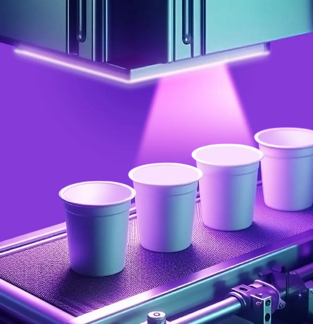 Traditionell verlassen sich Joghurthersteller bei der Desinfektion der Verpackungen auf eine chemische Reinigung, meist mit Wasserstoffperoxid, was sich im praktischen Einsatz auch durchaus bewährt hat. Man nimmt dabei aber auch Nachteile in Kauf. Der Chemikalieneinsatz bedeutet immer eine gewisse Umweltbelastung, Abfall lässt sich nie ganz vermeiden. Auch der Einsatz von Dampf kann hitzeempfindliche Verpackungsmaterialien schädigen, birgt also Nachteile. Alternativen, die hier eine bessere Ökobilanz bieten, sind deshalb sowohl für die Anlagenhersteller als auch für die Hersteller von Molkereiprodukten sinnvoll, um auch in Zukunft wettbewerbsfähig zu sein.