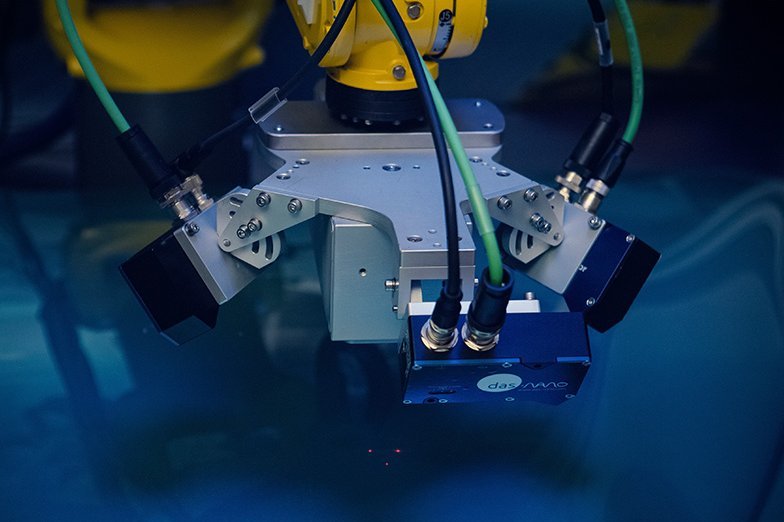 Durch die Auslegung auf eine nahtlose Prozessintegration wurde auch auf die Kompatibilität mit Standard-Robotern und bestehenden QS-Systemen großen Wert gelegt. Ein Triangulationssystem mit drei Lasern gewährleistet jederzeit die Präzise orthogonale Ausrichtung des Messkopf auch bei gekrümmten Oberflächen.