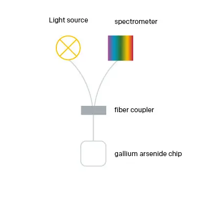 In this method, a small gallium arsenide crystal (GaAs) is located at the tip of the fiber. The temperature-dependent shift of the optical absorption edge of the semiconductor changes the reflected or transmitted light spectrum. The temperature is determined from this spectral change.