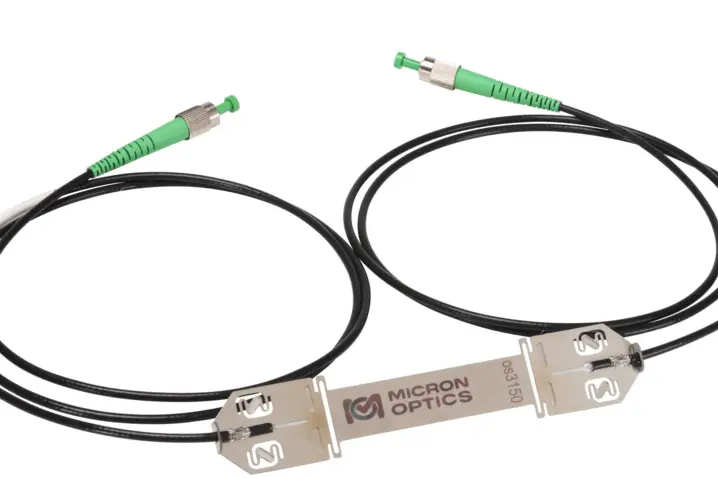 The os1100 Fiber Bragg Grating (FBG) is designed for use in fiber optic sensing applications. It is a single FBG centered in a two meter length of polyimide coated optical fiber. It may be used individually or can be spliced into an array of many FBGs.