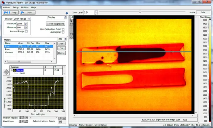 - Haute sensibilité spectrale de 0,9 à 1,7 μm; NIR / SWIR, de 0,7 à 1,7 μm
