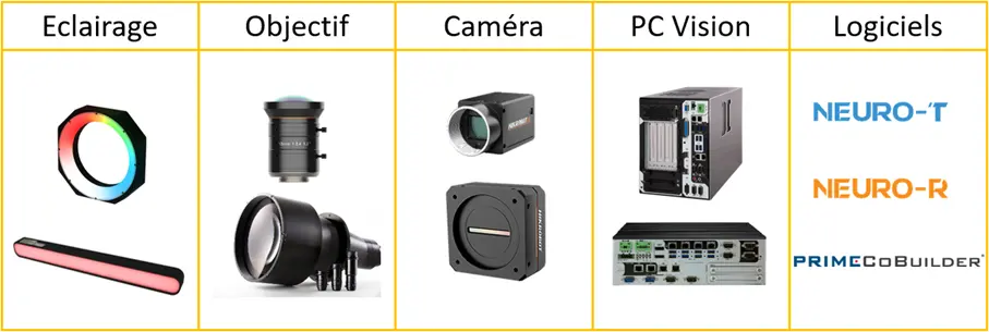 Un éclairage approprié permet de rendre visibles les détails cachés et d'améliorer le contraste des objets. Le choix de la combinaison caméra-objectif est essentiel pour atteindre les performances requises par les spécifications. Le dernier élément matériel est le PC dédié à la vision, capable de contrôler l'éclairage et les caméras tout en traitant les images et en communiquant les résultats aux machines du client.