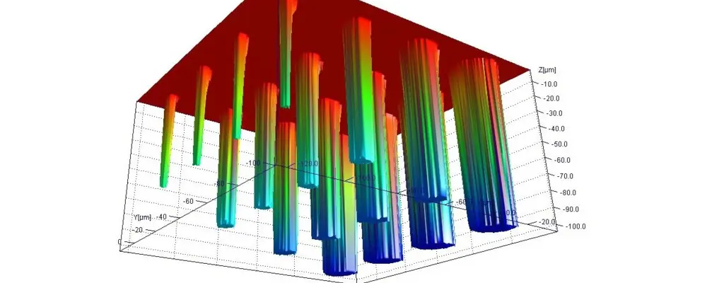 Polytec光学表面計測技術により、容易かつ信頼性の高い品質検査が可能:自動化プロセスにおけるエッチング深さの確認、VIA上の距離や表面パラメータの測定。色差共焦点センサーと顕微鏡ベースのプロファイラーは、実験室レベルから生産ライン内(インライン)まで、多様な測定能力を提供します。