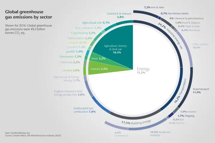 2Hannah Ritchie and Max Roser, n.d., Emissions by sector, accessed 1 Feb 1, 2023