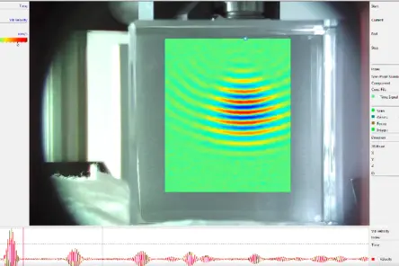 VibroScan QTec Neo スキャニング振動計はHeNeレーザにQTecテクノロジーを組み合わせた今までにないスキャニング振動計です。HeNeレーザの特長の一つは、水による吸収が近赤外(SWIR)レーザと比べ少なく、水中にある物体を測定できることです。今回は、水中での超音波伝搬の測定デモを実施予定です。