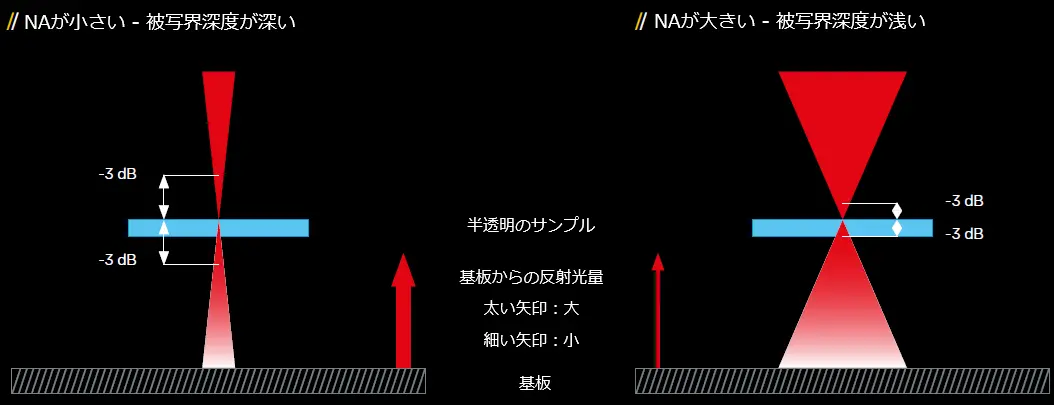 開口数(NA)の選択は測定時の特性に直接影響を与えるため重要です。