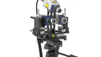 新しい VibroFlex TriMount は、3 つの VibroFlex Compact センサヘッドを搭載した頑丈なセンサホルダと、強力な VibroFlex Connect フロントエンドから構成される、非接触 3 次元振動計測用のモジュール式セットアップです。この組み合わせにより、最大 24 MHz の周波数帯域幅で正確かつ信頼性の高い振動計測が可能となり、幅広い用途に活用できます。HD+ カメラと精密な位置決め用レーザー調整機能、および FPGA ベースの最新世代信号処理機能を備えた TriMount は、試験構造物の真の加速度、速度、変位を捉えます。