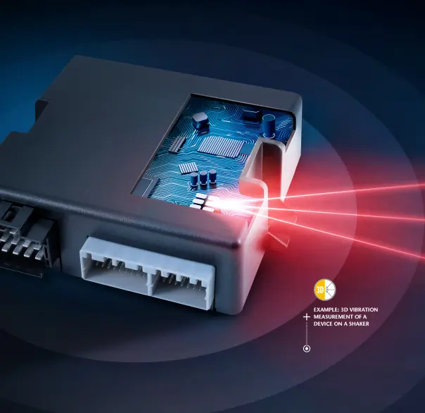 VibroFlex TriMountを3D振動測定システムとして使用するだけでなく、これら三つのレーザーバイブロメーターは独立した1次元単一点振動測定システムとしても使用できます。この多用途性により、研究や製品開発から信頼性の高くコスト効率の良い品質管理まで、幅広い用途に対応できます。