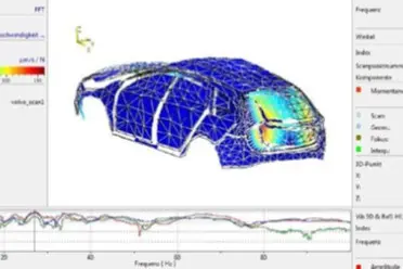 ポリテックの PSV スキャニングレーザドップラ振動計では、音や振動の発生源を正確かつ確実に調査し、構造体に伝わる音の伝搬経路や原因となる振動モードを特定します。NVH エンジニアは、動作中のたわみ形状を 3D で視覚化することにより、生産開始直前でも問題解決のためのアイデアを素早く思いつくことができます。