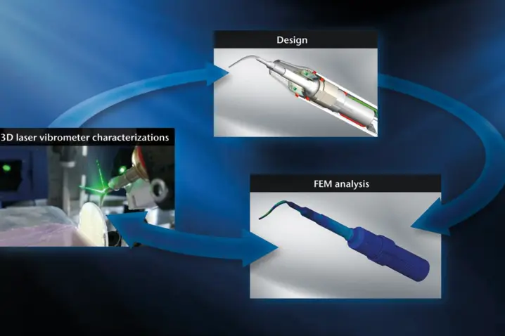 レーザドップラ振動計は医療用超音波機器の設計と開発の決定的な鍵となる技術です。歯科や外科用の医療器具においても、診断用医療機器においても、FEシミュレーションを検証するための理想的なツールです。MHz帯域の高い周波数帯域における優れた線形性と、高い水平分解能によるフィードバック効果の欠如のため、レーザドップラ振動計はほぼすべての構造ダイナミクスの測定に適しています。さらに音場の可視化と耐久性(歪み/応力)試験への応用もできます。レーザドップラ振動計は、効率的で信頼性が高く、効果的な器具の開発に適したツールです。