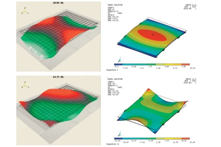剛性やダンピングを正確に測定するために必要な材料と構造パラメータを取得するには、ソーラーモジュールの動的特性を測定しなければなりません。共振周波数と振動変位形状を簡単に測定できるスキャニング型レーザドップラ振動計は、これらの測定に対する理想的なツールです。
