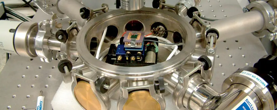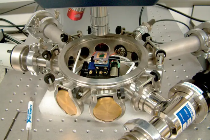 真空チャンバ、または、真空プローブステーションを組み合わせることによって、ポリテックの顕微鏡型レーザドップラ振動計 マイクロシステムアナライザ MSAシリーズは、圧力がMEMSモジュールの動的特性に及ぼす影響をウェハレベルで測定することができます