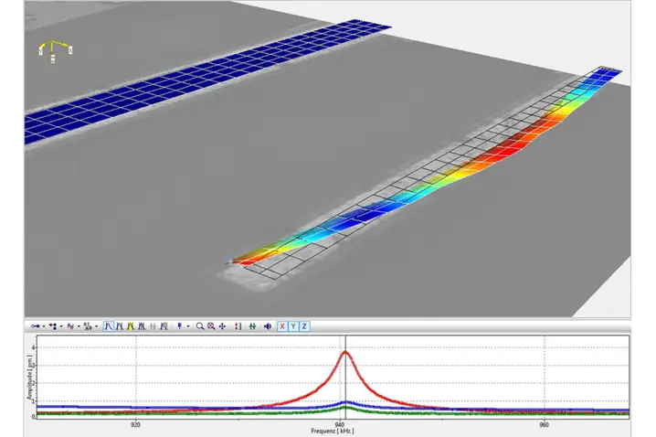 The 3D Micro System Analyzer records vibration components in all three spatial directions at once. The optical measurement system enables high-resolution 3D vibration analysis from DC up to 25 MHz with amplitude resolutions in the sub-picometer range, for both in-plane and out-of-plane vibration components.