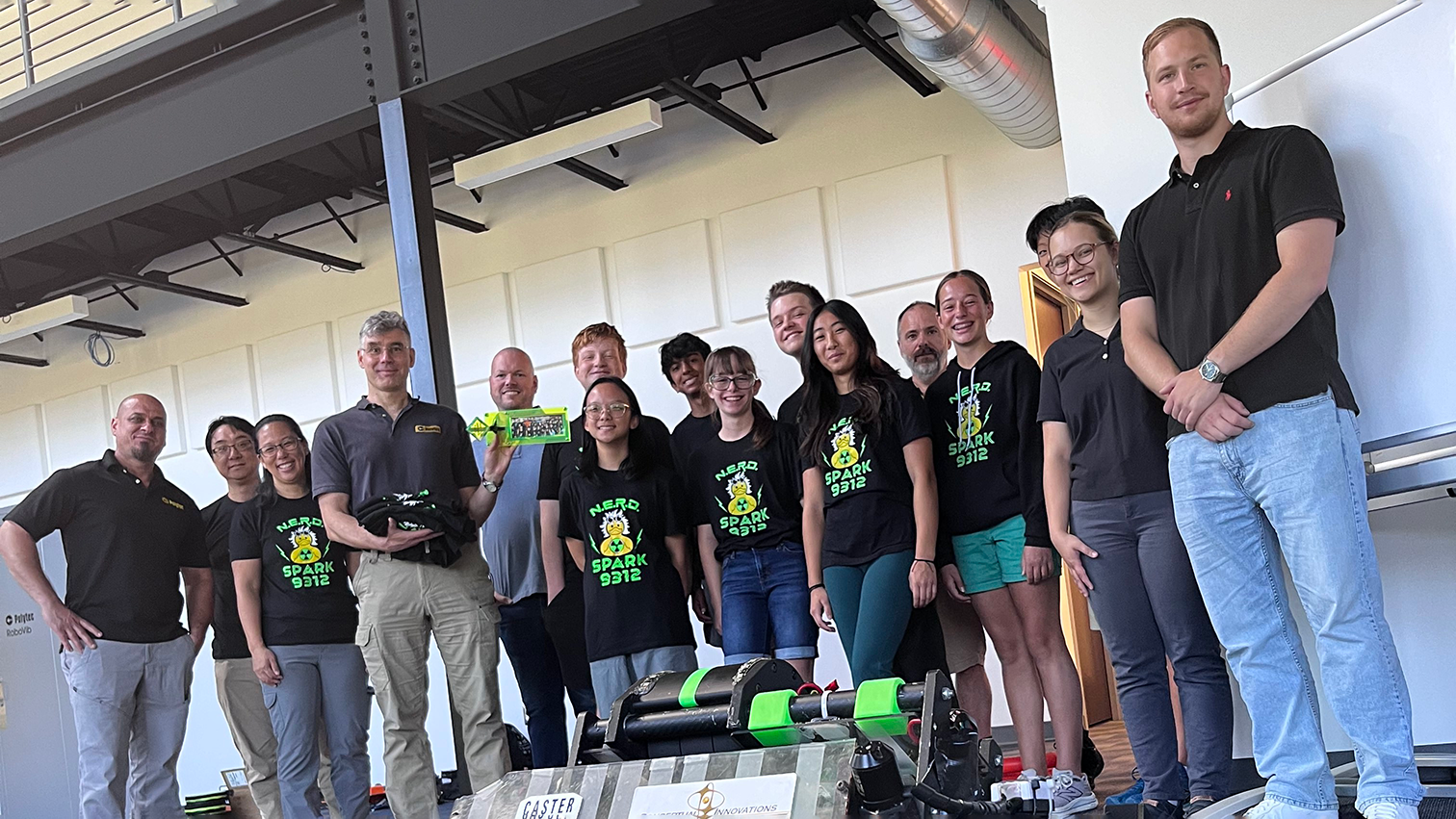 In recognition of Polytec's support, N.E.R.D. Spark recently visited the company’s Plymouth, Michigan office for a special presentation of their competition robot. The team showcased the robot’s advanced capabilities and shared insights into their journey this season. The team also had a unique opportunity to tour Polytec's state-of-the-art RoboVib® lab for automated experimental modal analysis, where they explored cutting-edge full-field vibration measurement technology.